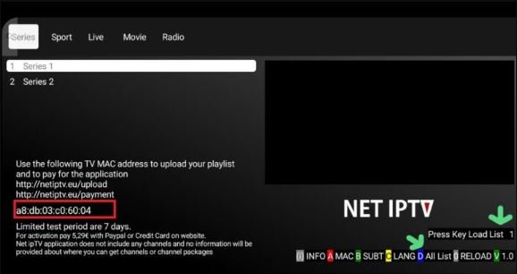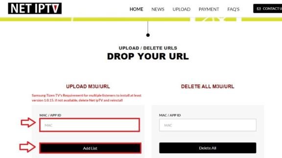 3. Accédez à la page de configuration via le lien suivant : https://www.netiptv.eu/Upload.